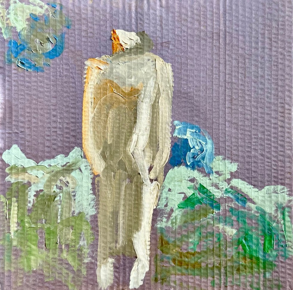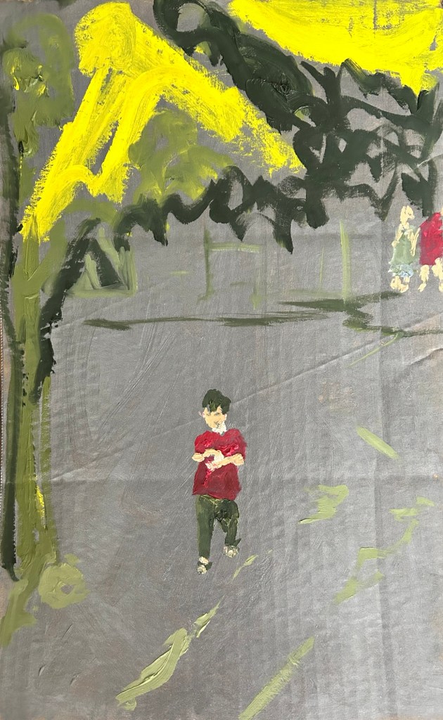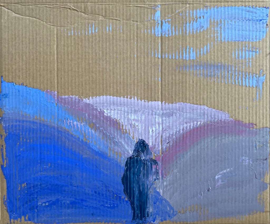 Solitude is often misunderstood—seen as either a choice for self-reflection or an imposed condition of isolation. My series Non-Recyclable Solitude explores this duality through lonely figures painted on recycled cardboard, using the remnants of my paint palettes. These works capture the weight of solitude that cannot be repurposed or dismissed, much like the emotions we carry long after moments of separation.